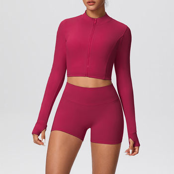 Long Sleeve Seamless Yoga Set 2-Piece Stretch Workout Outfit for Women