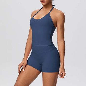One-Shoulder Yoga Set with High-Waist Shorts – 2 Piece Workout Outfit