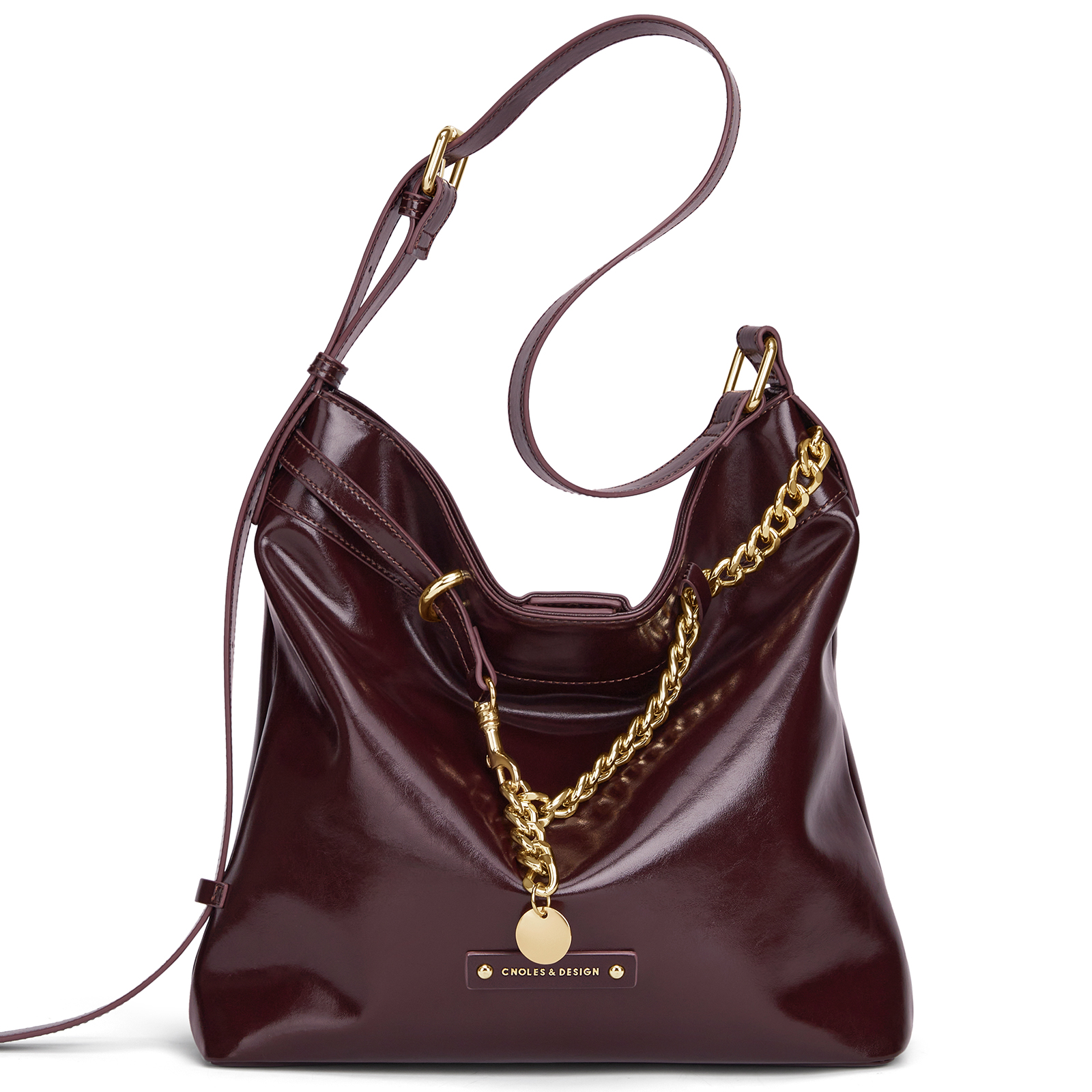 Crafted from high-quality split leather, this bag feels smooth, supple, and comfortable to carry. The soft bucket shape offers flexibility while maintaining a luxurious look. A sleek chain detail adds a touch of sophistication, while the sturdy top handle and shoulder strap allow you to carry it the way you prefer. Inside, a durable polyester lining protects your belongings and keeps everything neatly organized.