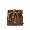This compact shoulder and crossbody bag offers the ideal balance of beauty and function. Its soft structure makes it comfortable to carry all day, while the bucket shape gives you convenient storage for your essentials. The secure hasp closure keeps your items safe, and the exterior open pocket lets you grab your phone or cards in seconds. Inside, an interior compartment provides simple, organized space for makeup, keys, small notebooks, or personal accessories.