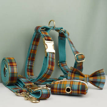 Luxury Silky Polyester Dog Collar Leash Harness Bow Set with Designer Logo