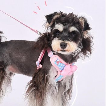 Plaid Dog Harness & Leash Set with Bow Tie