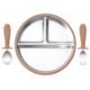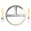 This feeding set is best used during the exciting stage when your toddler is starting to self-feed. The divided plate helps introduce a variety of foods and textures, while the non-slip suction base keeps it from sliding across the table or highchair tray. The fork and spoon are perfectly sized to help build confidence and fine motor skills. Because it’s made from durable stainless steel, this set will last through countless mealtimes without staining, warping, or retaining odors.