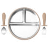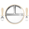 Turn every meal into a joyful experience with this 3-piece stainless steel toddler feeding set designed for little hands and big appetites. The set includes a divided plate with a secure silicone suction base, a training fork, and a spoon — everything your child needs to explore new flavors while learning to eat independently. Thoughtfully crafted from food-grade stainless steel, this set is safe, durable, and completely free from BPA, PVC, latex, phthalates, and other harmful chemicals, ensuring peace of mind for parents.