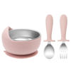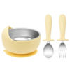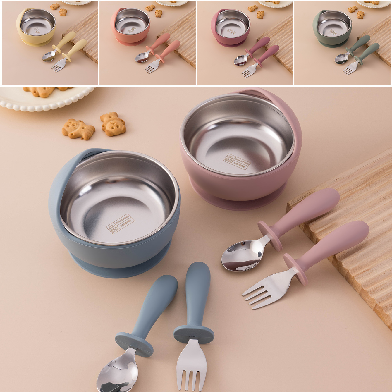 The detachable suction bowl keeps food where it belongs—firmly on the table. No more flying bowls or messy spills. The stainless steel utensils are perfectly sized for small hands and paired with soft silicone handles that provide a secure grip. Every detail has been designed to make independent eating easier, safer, and less messy.