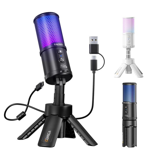 COMICA EJoy UNI S RGB Gaming USB Condenser  Microphone with Tripod Stand, Denoise, for Recording, Podcast, Chat, YouTube, PC, PS