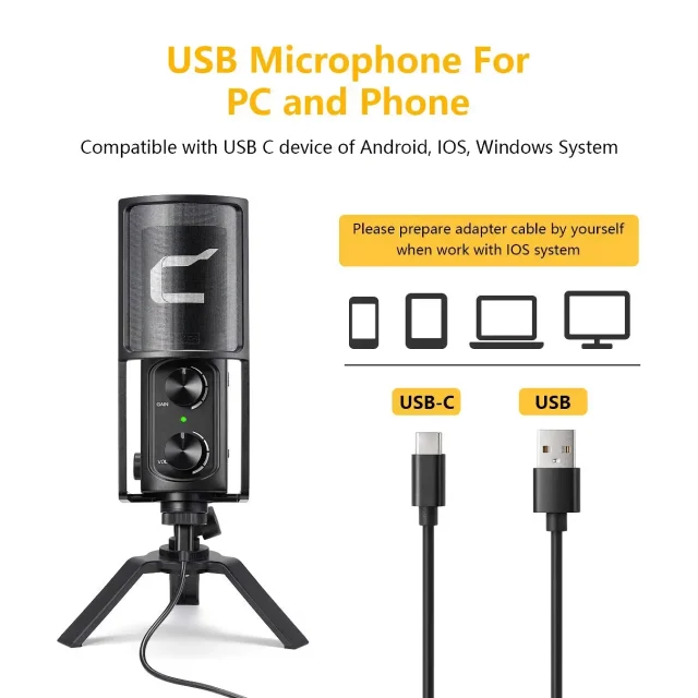 USB Condenser Microphone for Streaming, Recording & Online Meetings