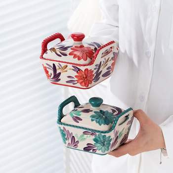 Lemon Ceramic Soup Bowl with Lid – Large Double-Ear 2L Kitchen Pot