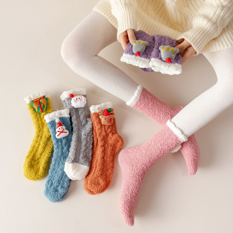 Embrace the cozy comfort of winter with these adorable cartoon-style women’s mid-length socks. Made from a soft cotton blend with a plush coral fleece texture, these socks keep your feet snug and warm all season long. Whether you’re lounging at home, curling up with a book, or stepping into your favorite boots, these socks bring both warmth and cuteness to your cold-weather wardrobe.