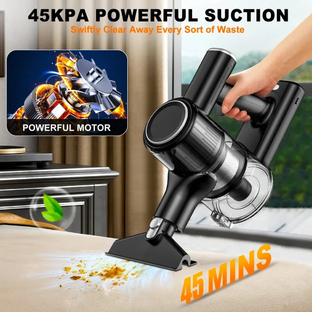 Meet your new go-to cleaning tool — a cordless handheld vacuum designed to bring strong, convenient, and mess-free cleaning into your everyday life. With up to 45Kpa suction power and a generous 1.5-quart dust capacity, this vacuum makes tackling dirt, crumbs, and pet hair feel surprisingly easy. Its lightweight design keeps cleaning comfortable, while the wire-free build gives you the freedom to move from room to room or car to garage without restrictions.