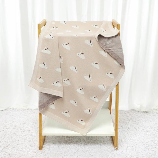 Cotton Baby Blanket – Soft & Cozy Newborn Bedding, Unisex Stroller Swaddle, Cute Rabbit Design, 39″ x 31″