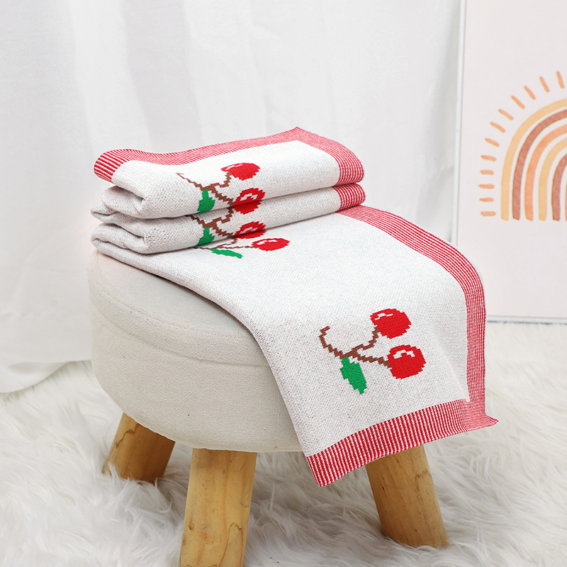 Wrap your baby in the gentle touch of pure comfort with this cotton knit baby blanket. Designed for both newborn boys and girls, this charming blanket features a cute cartoon cherry pattern that adds a delightful touch to any nursery or stroller. Measuring approximately 35×27 inches, it’s the perfect size for snuggling, swaddling, or adding an extra layer of warmth during naps and strolls.