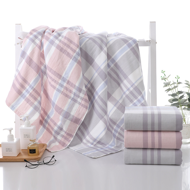 This towel set includes two practical sizes: a generously sized bath towel measuring approximately 27.5 x 55 inches and a handy face towel measuring about 13.5 x 29 inches. The smart construction features soft gauze on one side and plush terry on the other, giving you gentle comfort with effective moisture absorption. The yarn-dyed plaid pattern adds subtle style while staying timeless and easy to match with any bathroom décor.