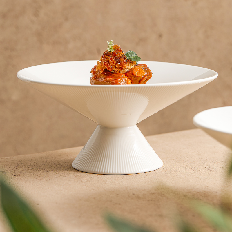 Luxury Ceramic High-Foot Plate and Dessert Bowl