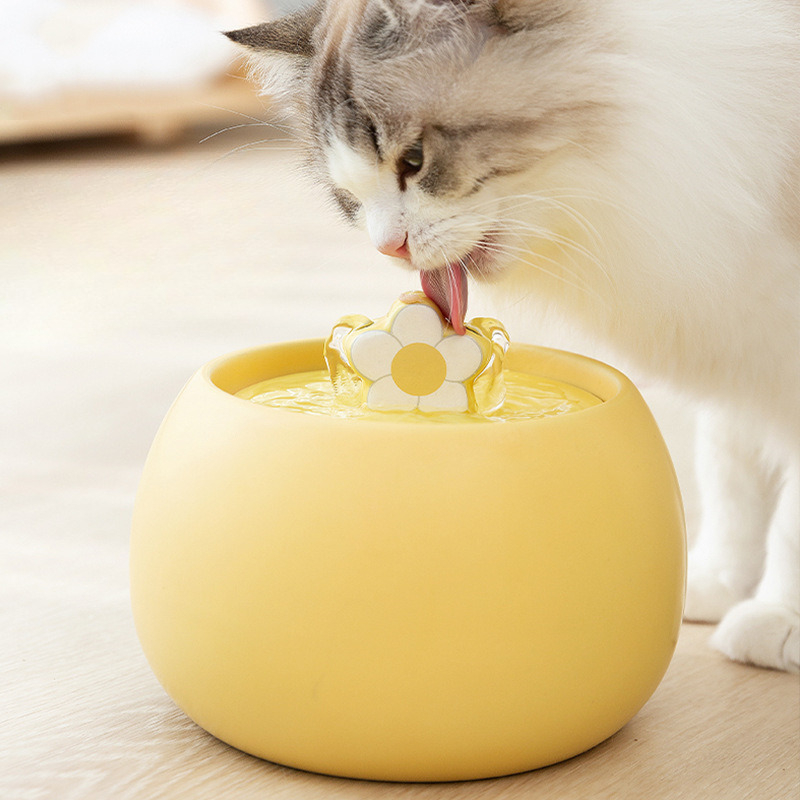 1L Flower-Shaped Ceramic Pet Bowl with Automatic Water Circulator
