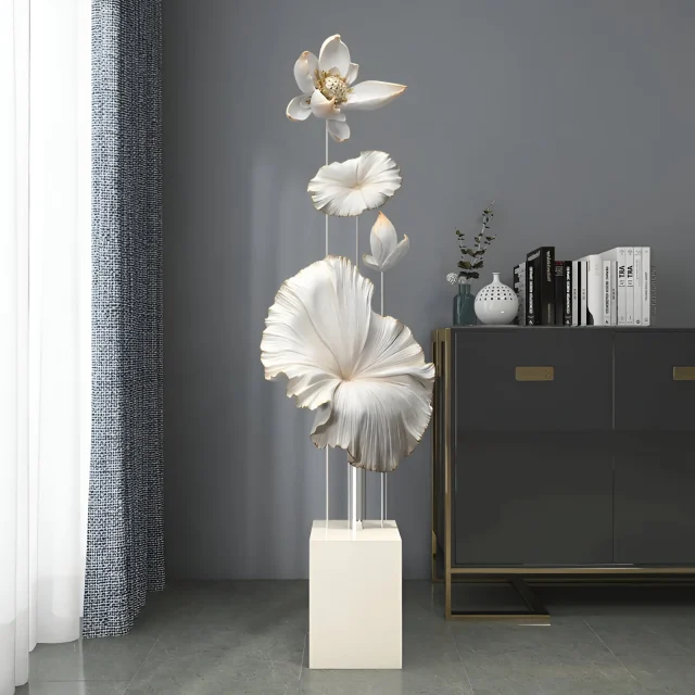 Transform your living room, office, or entrance area into a haven of calm with the Modern Lotus Resin Sculpture. Designed with a stunning floor-to-ceiling presence, this elegant décor piece captures the timeless beauty of the lotus—symbolizing purity, peace, and harmony. Its sleek and modern form makes it the perfect statement piece for any contemporary interior, adding both artistic flair and emotional warmth to your environment.
