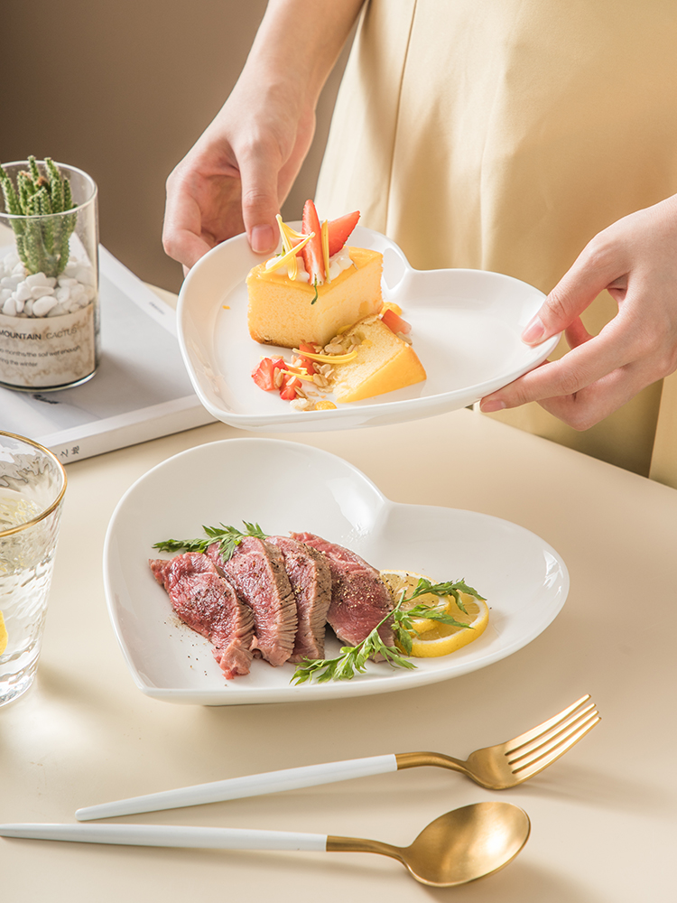 Creative White Heart-shaped Ceramic Plate Home Breakfast Dessert Bread Plate Cooking Bowl Dish Irregular Dishes Kitchen Utensils