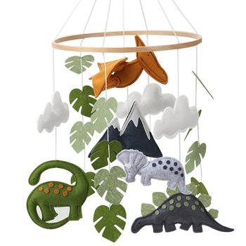 Wooden Dinosaur Crib Mobile with Felt Rattles for Babies 0–12 Months