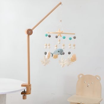 Baby Mobile Rattle with 360° Adjustable Wooden Crib Arm
