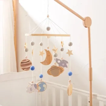 Personalized Space Baby Mobile with Wooden Rattles & Musical Bed Bell