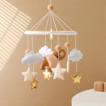Soft Felt Elephant Bed Bell Mobile for Baby – Wooden Rattle Crib Toy