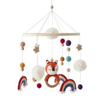 Rainbow Tassel Baby Crib Mobile with Soft Hanging Rattles