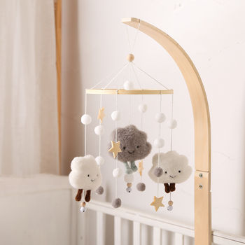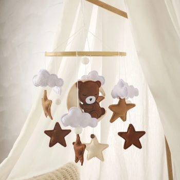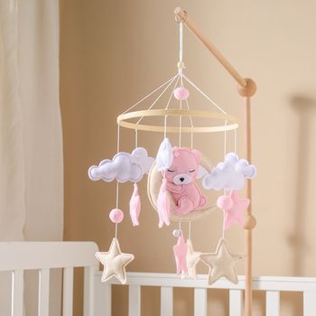 Soft Felt Bear & Moon Wooden Baby Crib Mobile Rattle Toy