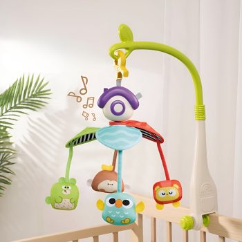 Musical Rotating Baby Crib Mobile with Lights and Rattles – Soothing Bed Bell Toy