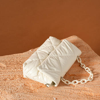 Elegant Women’s Cow Leather Crossbody Bag with Feather Down & Chain Detail