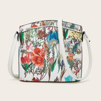 Floral PU Leather Crossbody Bucket Bag for Women