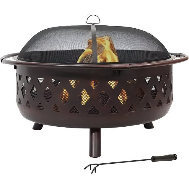 36-Inch Bronze Crossweave Outdoor Fire Pit with Screen & Cover
