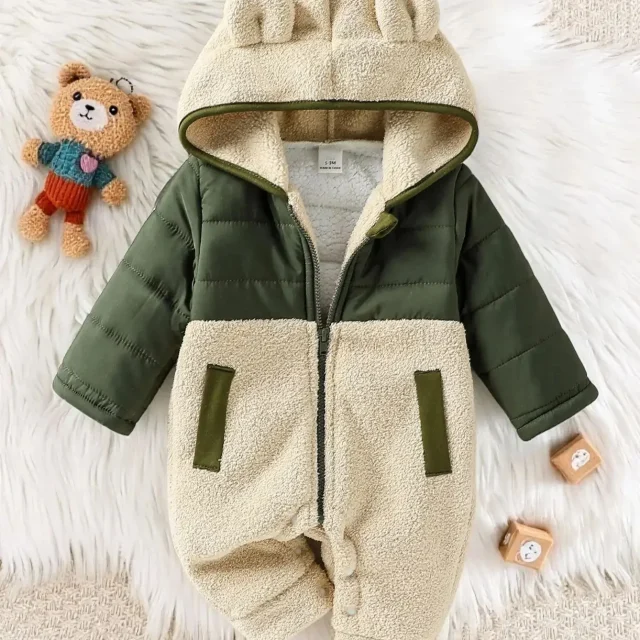 Keep your baby snug and smiling all winter long with this Cute Baby Bear Ear Winter Fleece Romper. Designed for babies from newborn to 24 months, this cozy hooded onesie wraps your little bundle of joy in gentle warmth from head to toe. With charming bear ears on the hood and a soft fleece lining, it’s the perfect blend of cuteness, comfort, and practicality for chilly days and nights.
