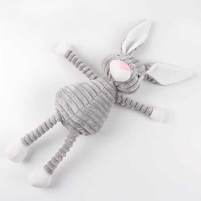 Gray Rabbit Squeaky Plush Dog Toy – Soft Corduroy Chew Toy for Puppies