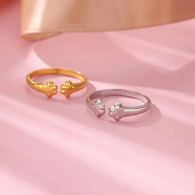 Celebrate your playful side with this adorable Bear Footprint Ring, designed to bring a sweet, nature-inspired touch to your everyday look. Crafted from durable stainless steel and finished in a warm gold color, this trendy open ring blends simplicity with personality. Its delicate 0.08-inch surface width offers a light, comfortable feel, making it perfect for daily wear, parties, or even as a meaningful token of affection. Whether worn alone or stacked, this ring is a small detail that makes a big impression.