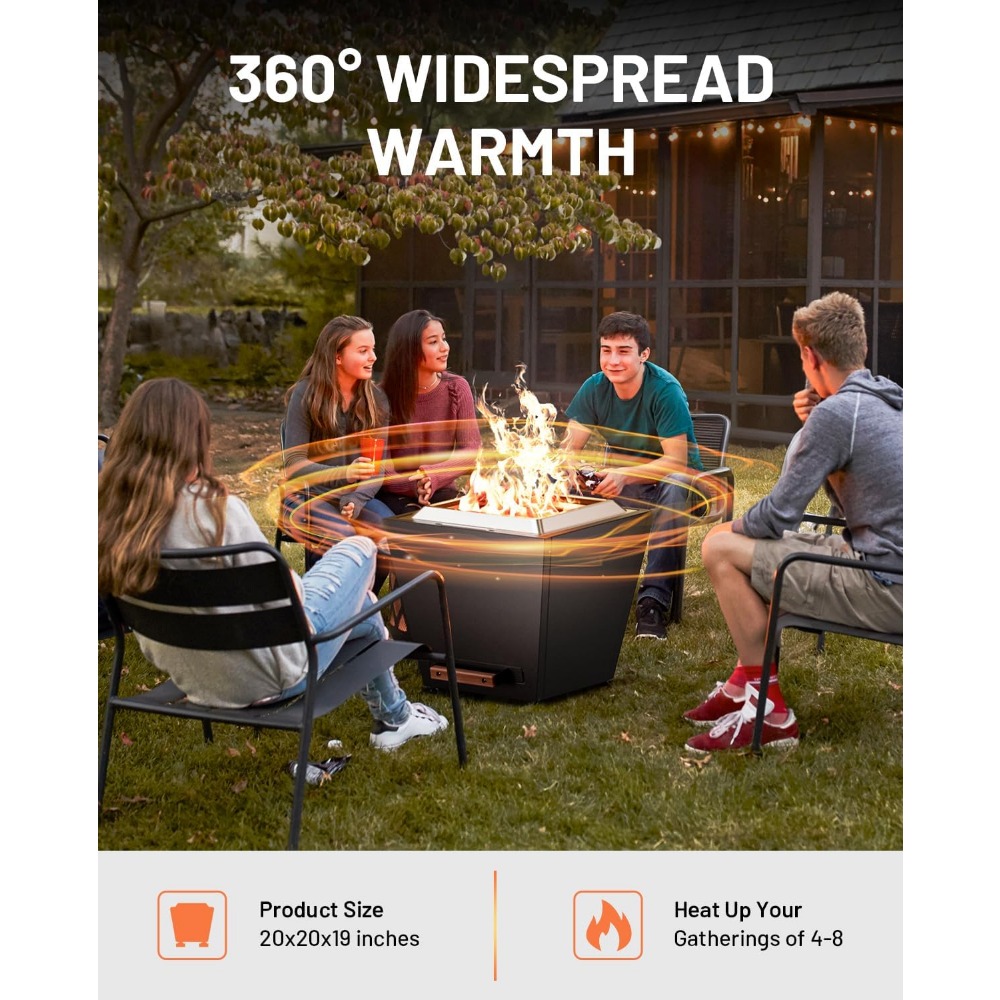 Enjoy cozy nights outdoors with the 20-Inch Smokeless Portable Fire Pit — the ultimate way to bring warmth, charm, and comfort to your backyard or camping adventures. Designed with advanced airflow technology and a sleek double-wall construction, this fire pit delivers a powerful, clean burn with up to 88% higher combustion efficiency than traditional stoves. Say goodbye to eye-stinging smoke and hello to pure, radiant flames that let you focus on what really matters — good company and great moments.