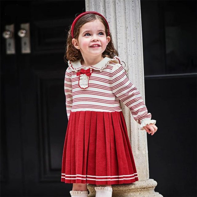 The striped pattern adds a playful touch, while the princess-style silhouette creates a sweet and polished look. This unique combination of charm and comfort makes it stand out from ordinary dresses. Whether she’s twirling at a party or walking through the park, the dress brings out her personality and adds that little sparkle of confidence every parent loves to see.
