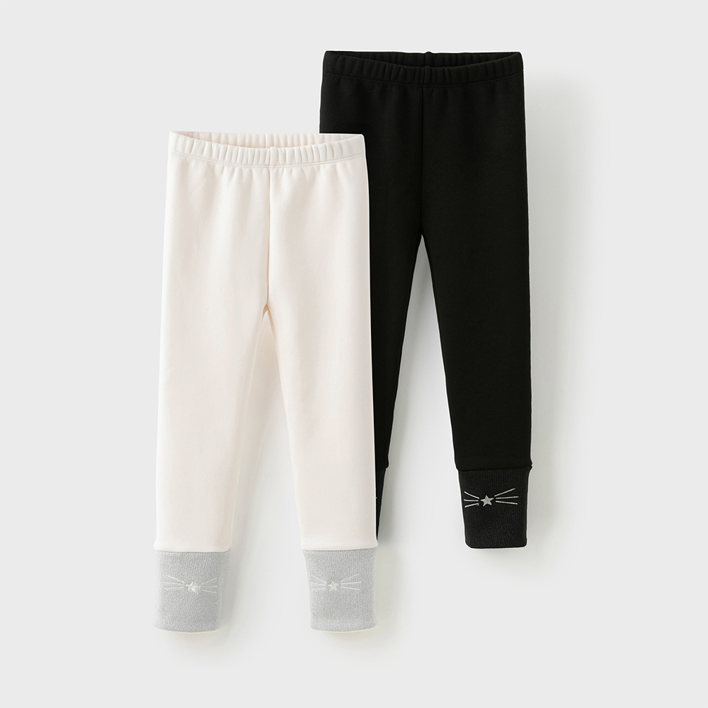 These leggings are the perfect blend of warmth, softness, and flexibility. The inner velvet lining provides a gentle hug of warmth, while the outer cotton layer keeps the texture smooth and breathable. The elastic waistband ensures a snug yet comfortable fit, making them easy to pull on and off — ideal for active girls who love to run, jump, and explore. Their timeless, minimalist design complements sweaters, tunics, and dresses, creating endless outfit possibilities.
