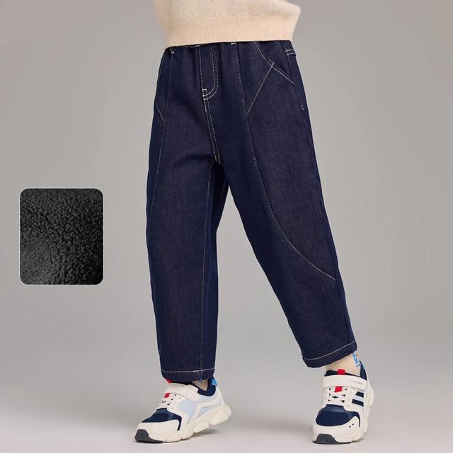 What makes these trousers special is their combination of warmth, comfort, and versatility. Unlike regular jeans, they feature a velvet-thickened lining that feels soft against the skin while locking in heat. At the same time, their casual straight cut gives them a polished look that works equally well for school days, outdoor adventures, or family gatherings. These pants are the perfect go-to option when your child needs to stay warm without sacrificing style.