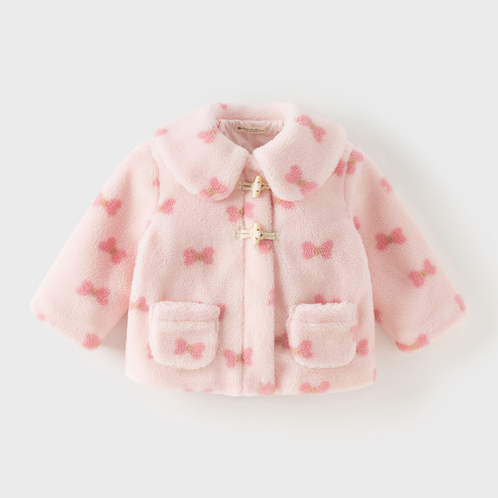 Wrap your child in comfort and charm with this beautifully crafted winter plush coat. Designed for cold-weather days, it features a soft, thickened feel that keeps little ones warm without weighing them down. The long sleeves and cozy construction make it perfect for everyday wear, whether heading to school, visiting friends, or enjoying weekend outings. Its sweet pink shade and playful print add a touch of fun, making it a delightful addition to any girl’s seasonal wardrobe.