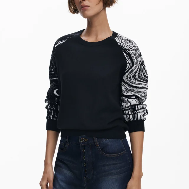 This Desigual knitwear piece is ideal for both everyday wear and smart casual settings. Pair it with a midi skirt for office chic or throw it over jeans and boots for a weekend-ready look. It shines in fall and winter but is lightweight enough to transition through early spring. Add statement earrings or a scarf for a pop of color – the black base lets your style take center stage.