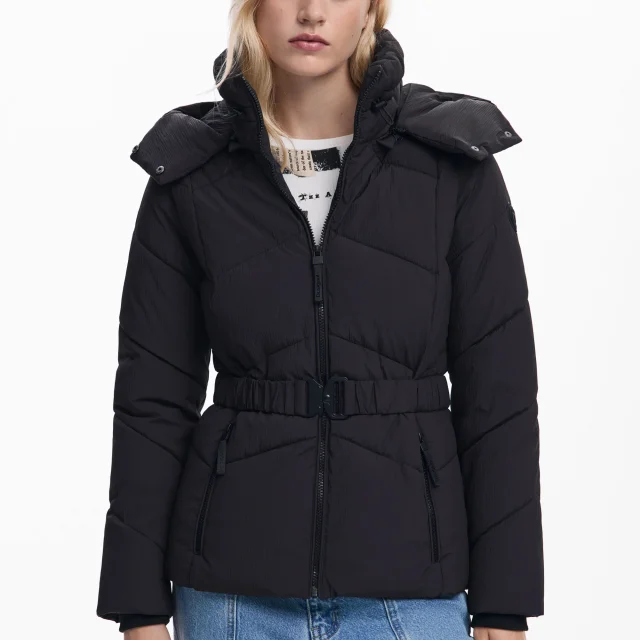 This jacket isn’t just practical—it’s a statement piece that adds flair to any outfit. The combination of long sleeves, a functional hood, and a belted waist makes it an ideal choice for various occasions, from brunches to evening outings. Embrace the chilly weather with confidence, knowing you look stylish while staying warm. The Desigual Women’s Black Jacket is not just an article of clothing; it’s a must-have wardrobe essential for the fall and winter seasons.