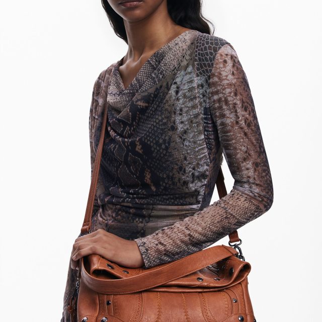 This Desigual handbag is designed to complement your autumn and winter wardrobe. Pair it with cozy sweaters, tailored coats, or chic boots — its warm brown tone blends effortlessly with the rich hues of the season. Whether you’re heading to the office, meeting friends for coffee, or enjoying an evening out, this bag elevates any outfit with ease.