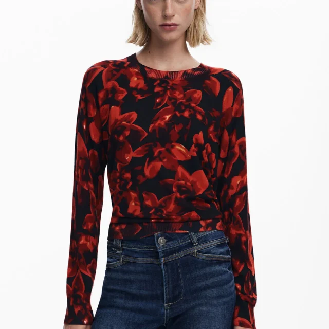 The standout floral design adds a fresh twist to classic black knitwear. Unlike plain sweaters, this piece captures attention with its lively detailing, making it unique and true to Desigual’s signature artistic style. It’s not just a sweater—it’s a fashion statement that highlights individuality and creativity while remaining versatile enough for everyday wear.