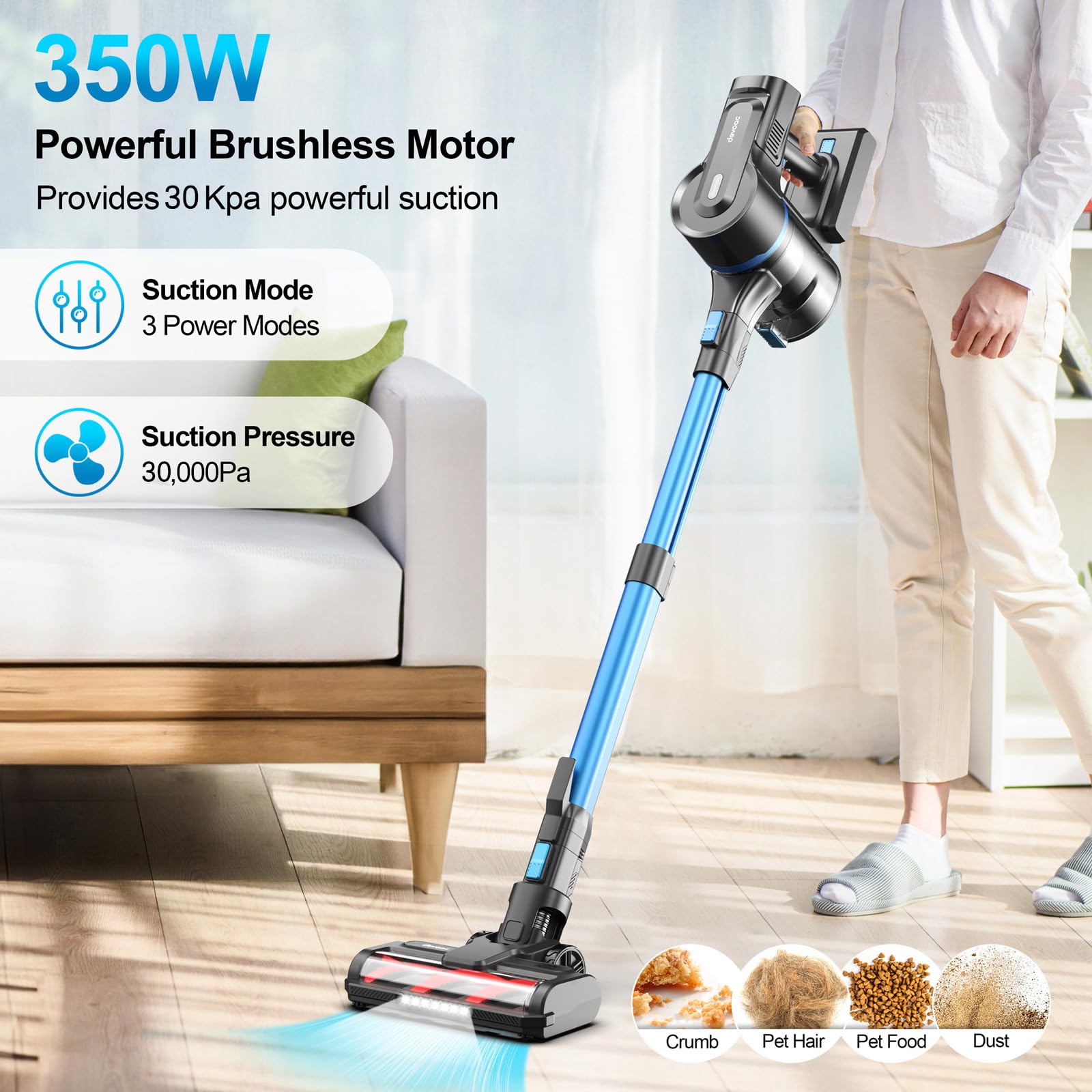 Equipped with a high-performance 350W brushless motor, this vacuum delivers an impressive 30Kpa suction power to lift dust, dirt, pet hair, and crumbs in seconds. Its quiet 65dB operation ensures you can clean without disturbing your family or pets, while the multi-cyclone filtration system maintains strong suction for long-lasting performance.