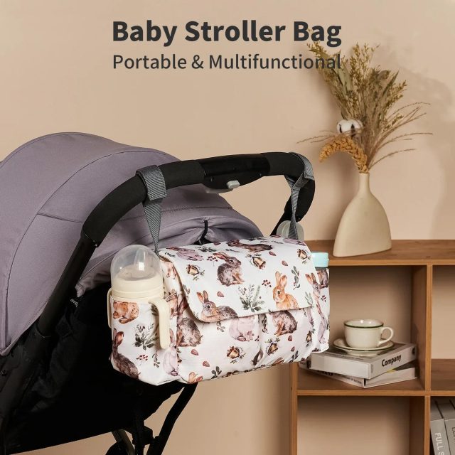 This stroller organizer is not just a bag—it’s your personal helper during every outing. The waterproof fabric means no worrying about spilled milk or sudden drizzles. With its roomy yet compact design, you’ll have space for diapers, wipes, bottles, keys, and even your phone, all neatly organized. The playful cartoon print makes it extra special, bringing a smile to you and your little one while on the go.
