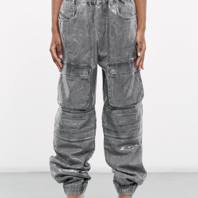 Step into confident style with these Diesel women’s denim cargo pants, designed for modern wardrobes that love a bold twist. Crafted from premium cotton denim, this pair blends a relaxed cargo silhouette with subtle sequinned detailing for a look that feels both laid-back and elevated. The faded grey wash adds depth and character, making these pants feel lived-in, cool, and instantly wearable.