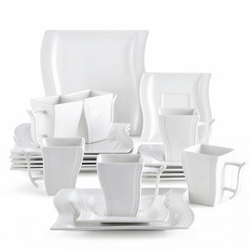 18-Piece White Porcelain Coffee Cup, Saucer & Dessert Plate Set
