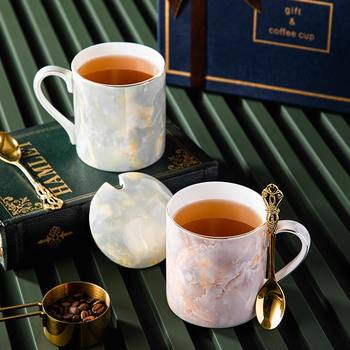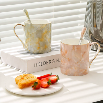Luxury Marble Stripe Bone China Coffee Mug – 13.5 oz Elegant Tea Cup