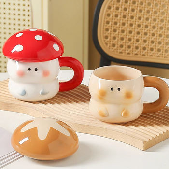 Cute Mushroom Ceramic Mug with Lid – Cozy Coffee & Tea Cup