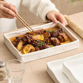 White Ceramic Rectangular Dinner Plate – Modern Steak & Dessert Dish